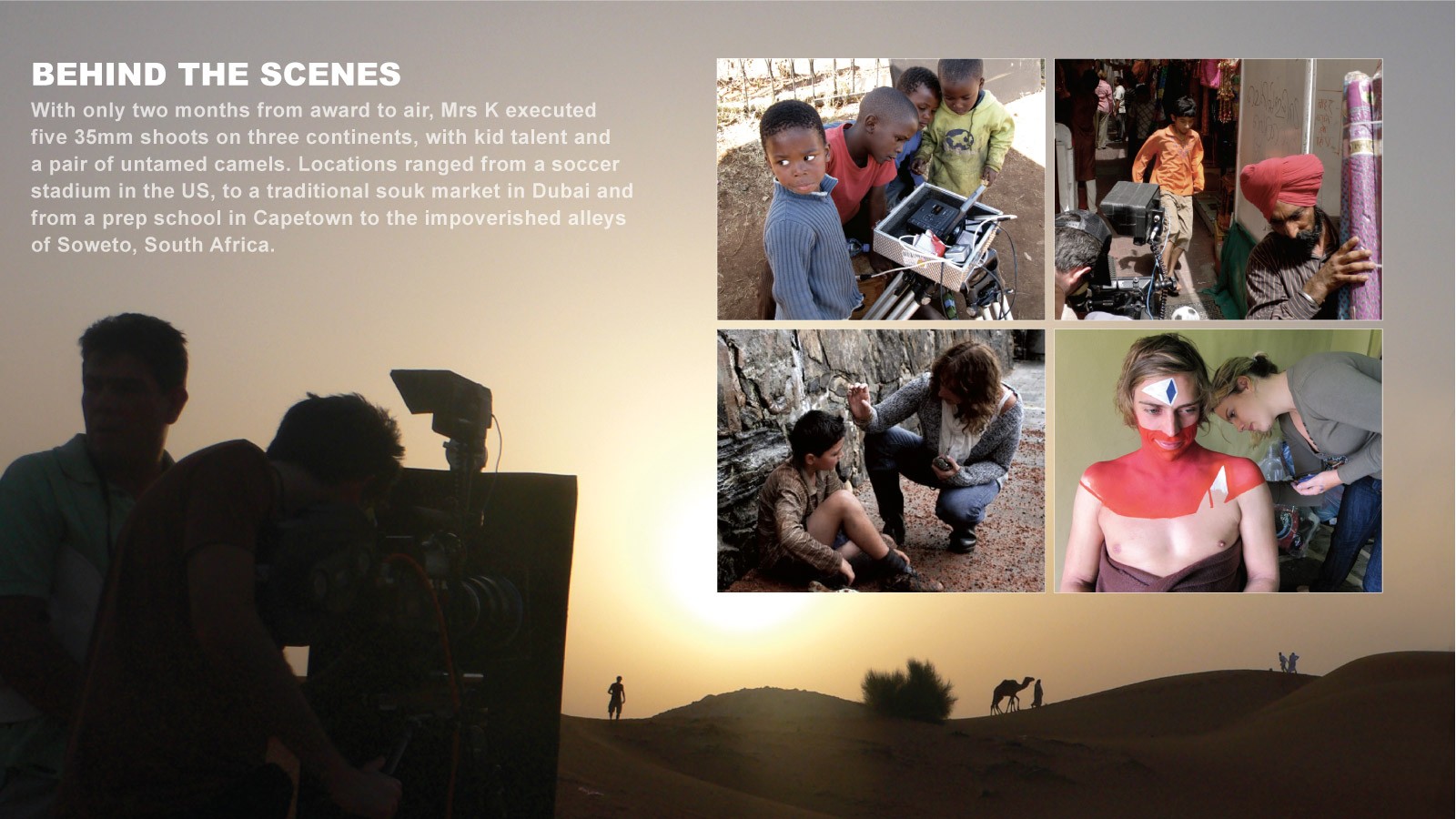 Filmed on location in Johannesburg, Capetown, Dubai and Denver, CO